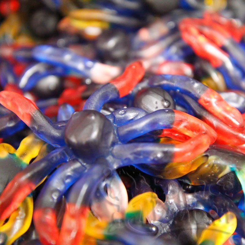 Ingrédients : Sirop de glucose, sucre, gélatine, acidifiant : acide citrique, acide lactique,stabilisant : sorbitol, gélifiant : pectine, arômes, colorants : concentré de fruits et préparation d'extraits végétal (paprika), carmin, bleu patenté V, huile végétale, agent d'enrobage, cire d'abeille, cire de carnauba.
